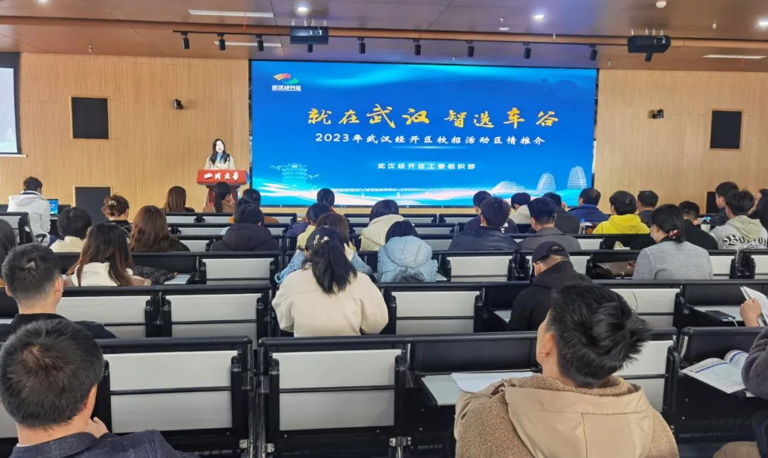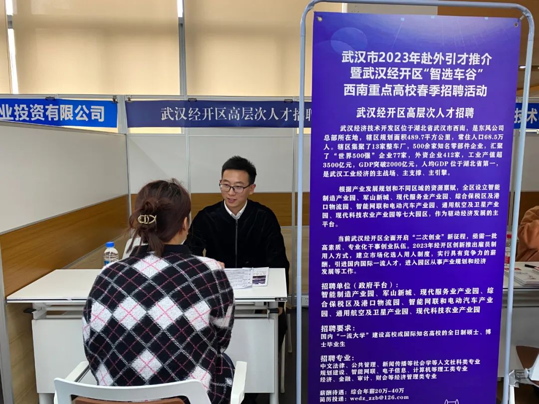 招聘会现场,工委组织部相关负责人宣传推介武汉经开区的区位优势、产业布局、发展平台和人文环境等情况,并就学子们关心的《人才强区战略3.0》“黄金十条”作出详细解读。
