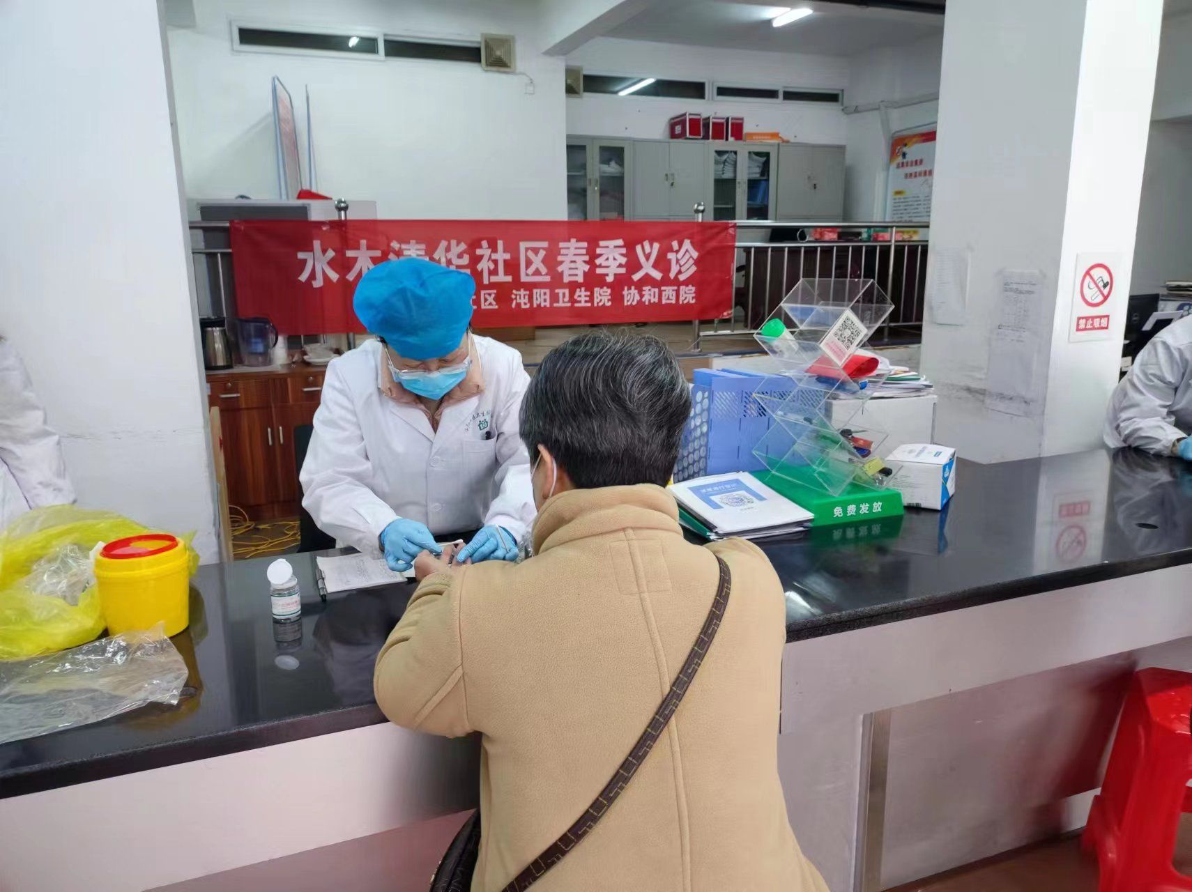 3月22日上午,水木清华社区联合沌阳医院、协和西院开展春季健康义诊。