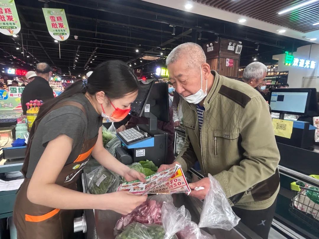 车谷融媒4月16日讯 “以前想给孙女买点排骨煨汤要跑老远,现在在家门口就可以买到了。”4月15日一大早,在武汉经开区沌口街道沌口馨苑小区的社区超市里,居民佘阿姨买到了新鲜的排骨。
