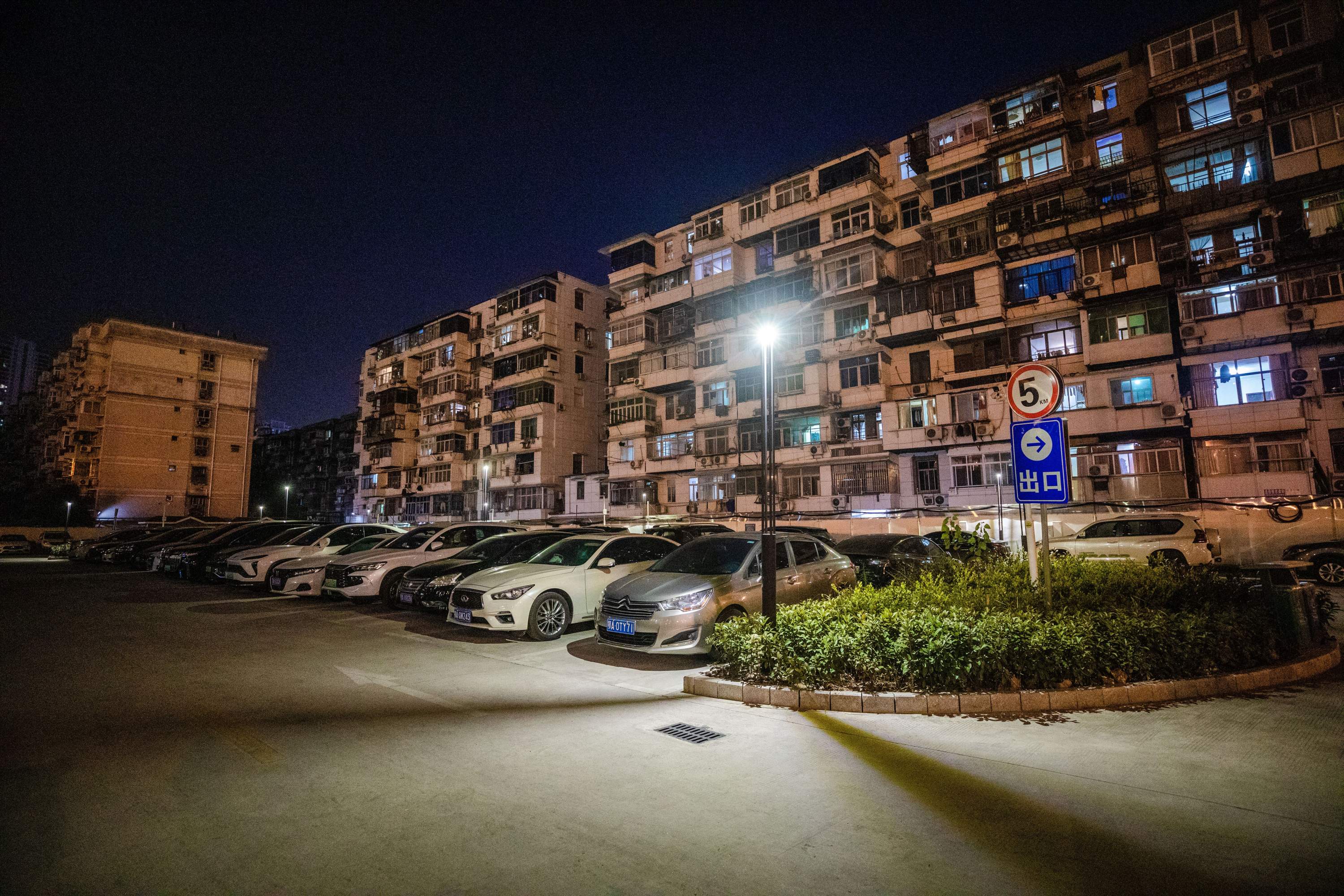 两湖路停车场,夜晚停满了附近居民的车。 通讯员供图