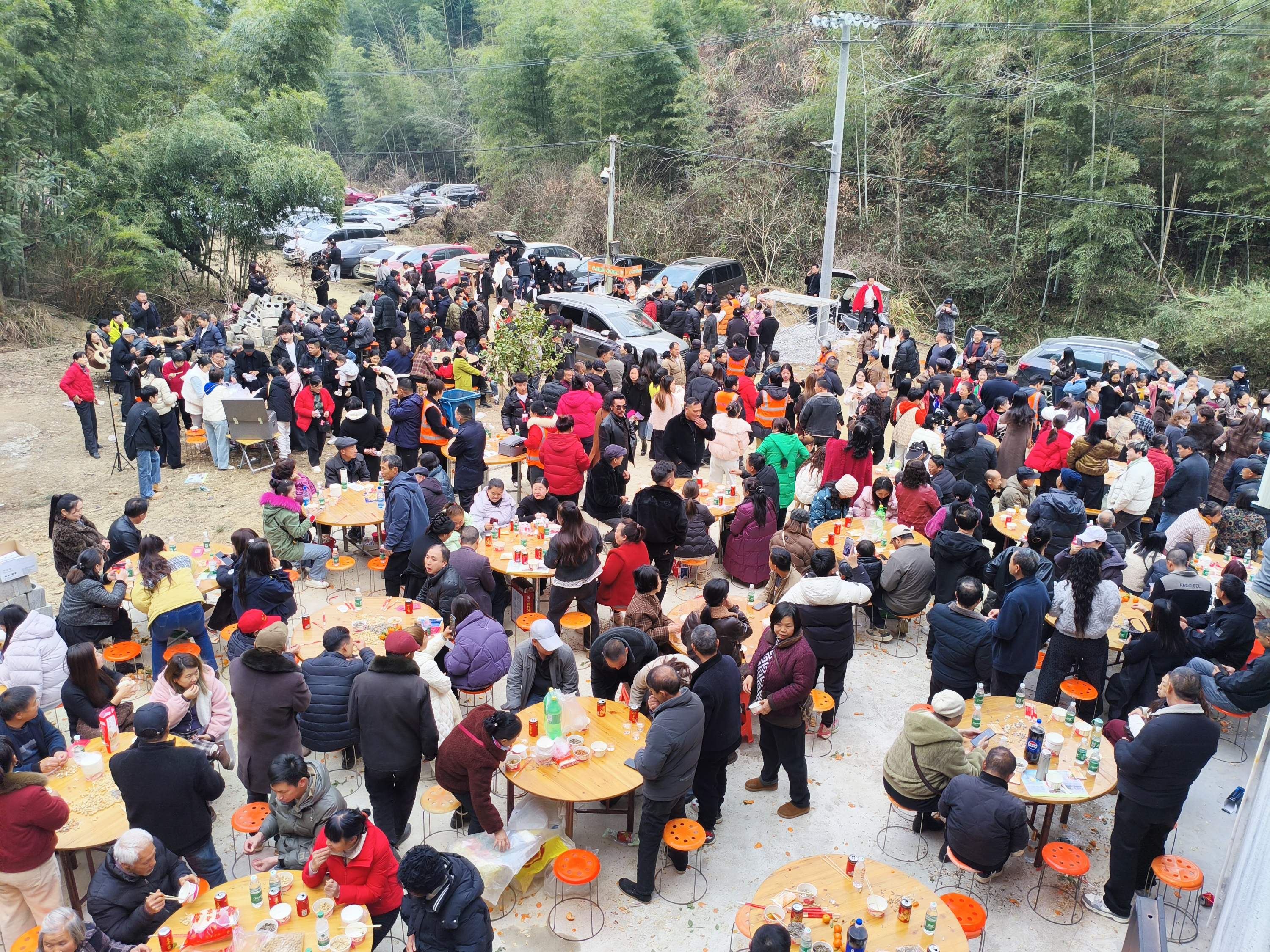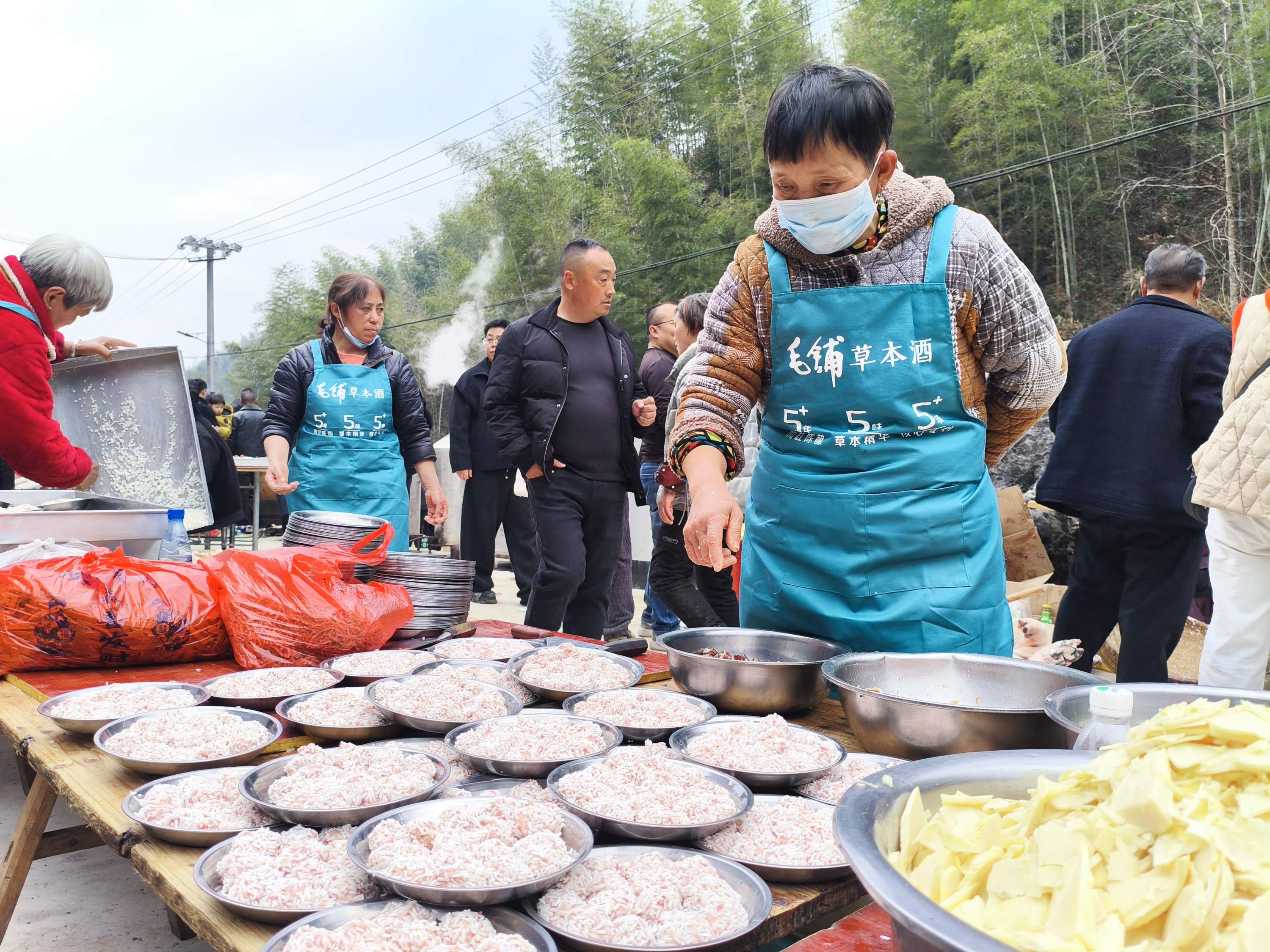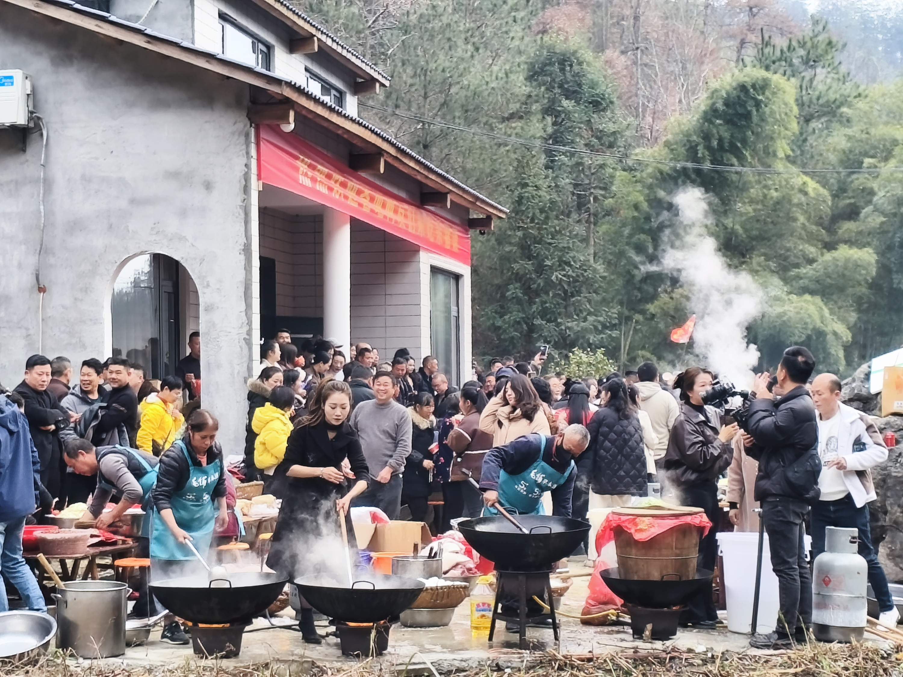 当天,120余名党员干部、志愿者和公安民警悄然进场。他们疏导狭窄山路的交通、引导停车、维持用餐秩序、清理垃圾、解答疑问。村主任汪义兵在北山岩上值守了一整天,连口饭都没顾上吃。还有许多陌生的网友,清晨六点就赶来帮忙杀猪、打扫。