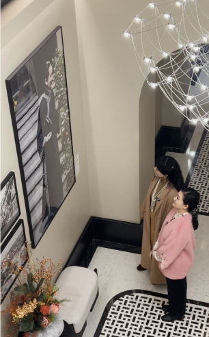 这栋建筑的前身是1896年的华俄道胜银行金库,紧挨着宋庆龄故居,1927年宋庆龄女士曾在此居住过一段时间,酒店因此得名。主理人胡梅玲带着我们一行人穿过大堂,手指轻触过那些被岁月打磨得温润的铜质窗户把手,“这些都是按那个年代的风格打造的。”她说。楼梯同样有百年的历史,踩上去吱呀作响,却稳稳当当——每一道痕迹都是时光留下的印记。