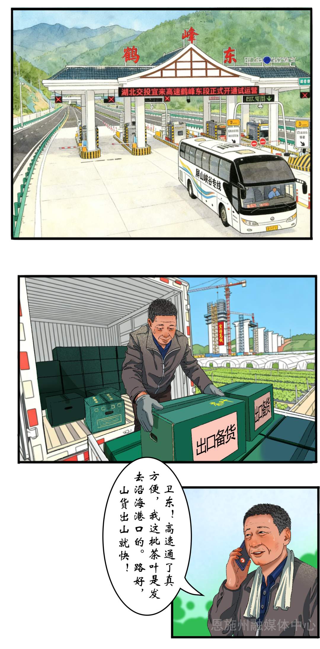 田卫东挂掉电话,心里也跟着热乎起来。他抬头望向更远的群山天际线。那里,宜涪高铁的建设工地上,巨大的塔吊如同钢铁森林般矗立,在云雾中隐约可见。他感到心里无比踏实,转头对妻子说:“等那条‘铁龙’也通了,天南地北的客人,怕是眨眼功夫就能到咱这儿了。”2024年年底,田磊陪着怀孕的妻子做完产检回到鹤峰老家。车子驶下新开通的高速公路,转入熟悉的乡道。妻子望着窗外,忽然轻声说:“等咱们孩子上小学,说不定就能坐着高铁出去玩儿了。”田磊笑了笑。此刻,妻子手中清晰的产检单和远处的高铁建设工地,已经让未来变得触手可及。