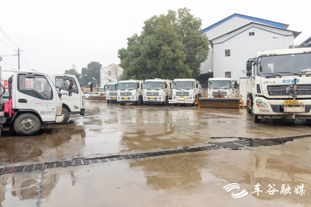 沌口街滨江市政环卫公司内,环卫工人正陆续将融雪盐拆袋装车,值班值守人员不间断巡查,严阵以待防范极端雨雪天气。