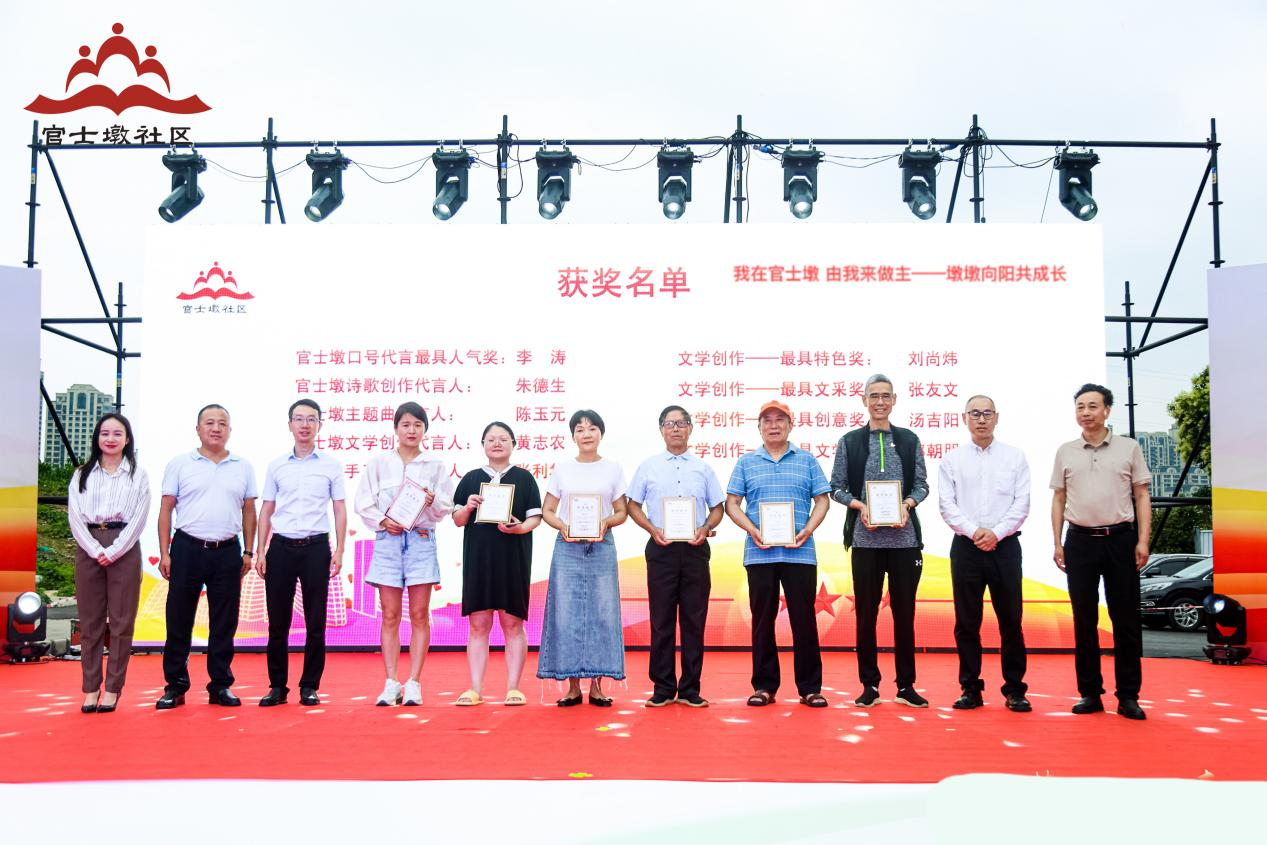 居民征集投票历时一个多月,网络投票总数达16022票,浏览量达56541次,最终涵盖社区精神口号、社区主题曲、诗词、书法、手工作品等9个作品入围。官士墩社区举办创作大赛颁奖礼并宣布评选出的五位“社区代言人”。