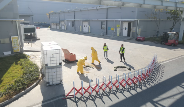 危险废物泄漏应急演练在中创新航进行,演练模拟员工转运废电解液时因叉车碰撞导致吨桶倾倒,5吨废液泄漏并向雨水管网漫延,1名员工眼部沾染废液受伤。武汉经开区生态环境分局接报后启动Ⅳ级应急响应,联合应急、医疗等部门组建现场指挥部,开展应急监测、医学救援、污染处置等工作,指导企业通过围堵、分类收集等措施控制污染,最终将泄漏废液全部导入应急池,实现污染零外排。