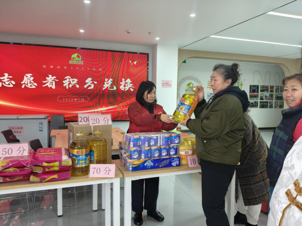 “这一年参与了社区的环境整治、敬老助残、政策宣传等好多志愿服务,没想到还能兑换到实用的礼品,感觉自己的付出被看见、被认可,特别有成就感!”志愿者郑阿姨拿着兑换到的大米,脸上洋溢着幸福的笑容。
