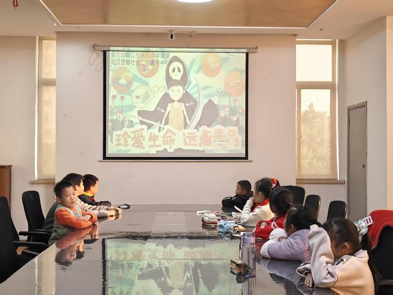 车谷融媒1月16日讯 1月9日,沌阳街道全力北职工社区联合武汉楚馨社会工作服务中心,在社区四点半课堂开展了一场“远离毒品,防拐防骗”为主题活动。活动通过知识讲授与手工创作相结合的形式,孩子们边学边玩,化身 “禁毒小卫士”,在色彩与创意中筑牢安全防线。