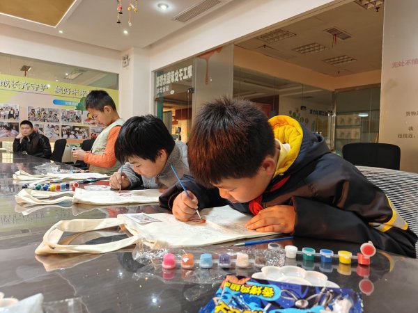 社工穿梭在孩子中间,耐心指导调色、勾勒线条。在创作过程中,孩子们进一步深化了对禁毒知识的理解,将“珍爱生命、远离毒品”的理念深深根植于心。一张张普通的帆布袋,变成了独一无二的 “安全宣传袋”。孩子们举着自己的作品互相展示,成就感满满,还主动念叨画里的安全知识。