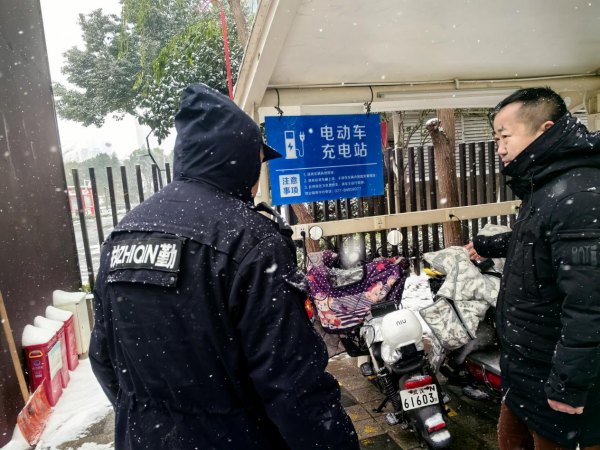 新民社区“暖冬服务队”雪中巡查保安全,织密寒冬里的安全网
