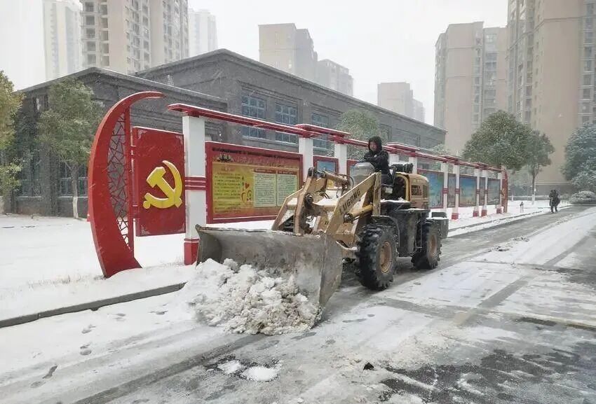 面对低温雨雪天气,武汉经开区及时发布《致全体车谷人的扫雪除冰倡议书》,各街道、社区积极组织党员干部、志愿者,对公交站台、地铁口、有轨电车站、公厕及人行天桥等人员密集、易结冰区域,开展人工除雪、撒盐作业,全力保障市民出行安全与畅通。