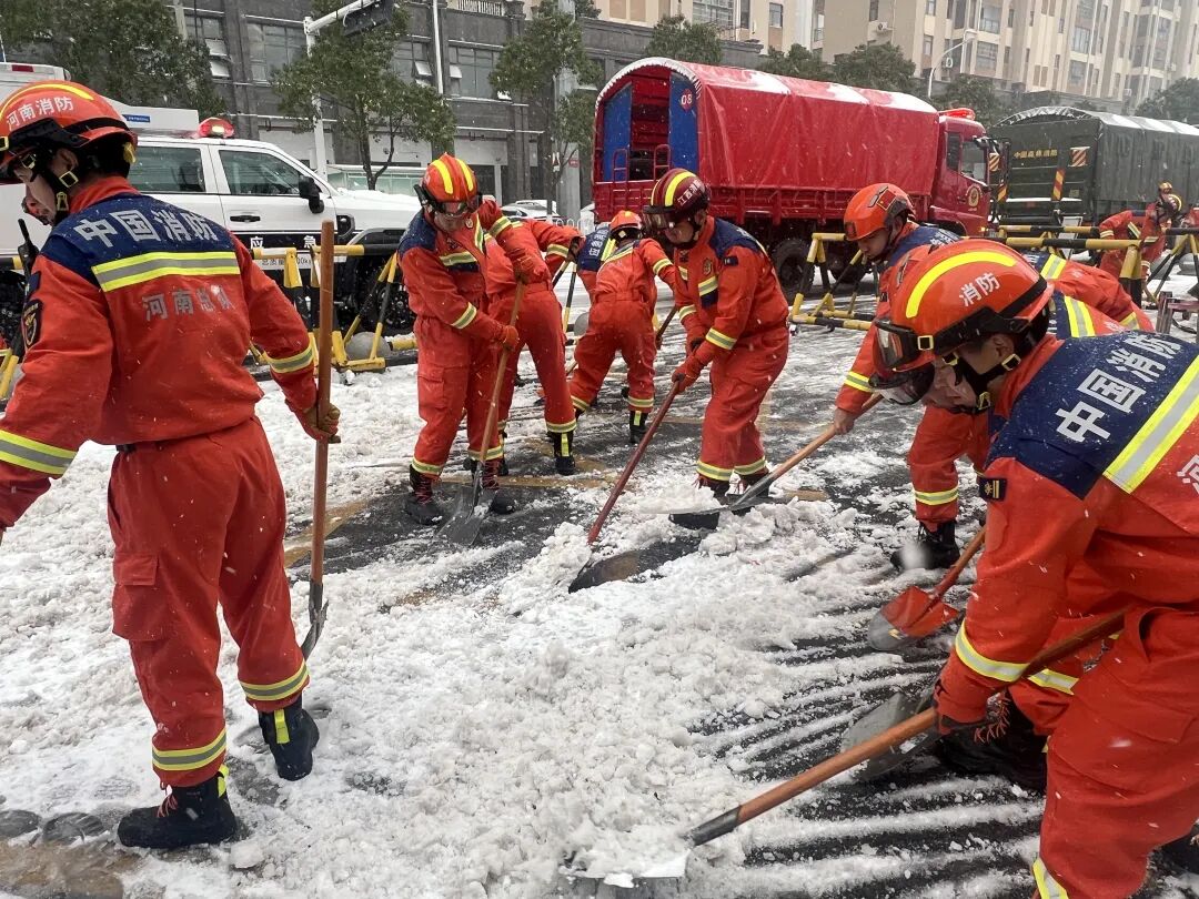 为应对极端天气,区应急局统筹救援力量,提前调度部署华中应急救援中心近千名队员、消防救援局100余人的队伍,对医院、校园、大型商超等重点民生场所,持续开展铲雪除冰攻坚,全力保障城市有序运转。