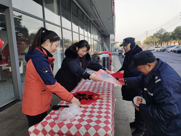 为让企业职工在上下班高峰时段品尝到热腾腾的腊八粥,一大早,志愿者们就开始熬煮腊八粥。活动现场,工作人员一边为职工递上热气腾腾的腊八粥,一边送上福字春联,叮嘱大家注意冬日保暖,祝福大家在新的一年里平安顺遂、阖家幸福。“天气寒冷,喝一碗热粥,心里特别暖和。”刚下班领取到粥品的企业职工王林笑着说道。