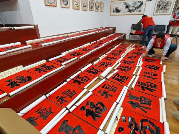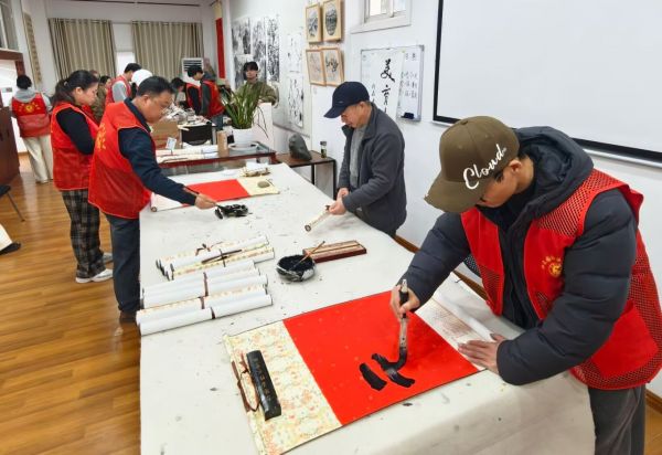 车谷融媒1月28日讯 近日,沌阳街道沌龙片区党建工作协调委员会、沌阳街道江大园社区党委携手江汉大学书法研究院、江大园小区业委会联合开展“党建共建聚合力 翰墨送福暖民心”主题活动,为辖区居民送福添暖。