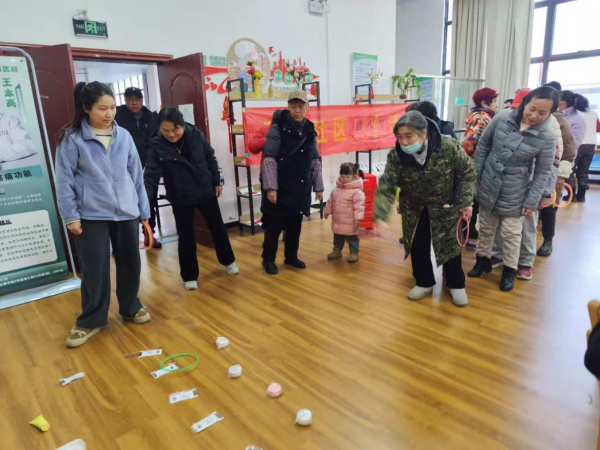 品尝完美味的腊八粥,现场还设置了欢乐套圈趣味小游戏。老人们纷纷踊跃参与,有的瞄准目标稳稳出手,有的互相支招分享技巧,小小的套圈不仅套住了奖品,更套住了大家的欢声笑语。