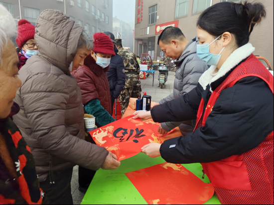 民俗集市区域人头攒动。糖画摊位前,非遗传承人以糖作画,龙、凤、生肖马等造型栩栩如生;剪纸、冰糖葫芦、书法送福等摊位也都人气爆棚,传承人现场展示技艺,手把手教居民体验传统手工艺;民俗游戏区内,投壶、锤丸、猜灯谜等传统游戏吸引了各个年龄段的居民参与。志愿者们在一旁为获胜者发放小礼品,在互动中拉近了与居民的距离,增进了邻里情谊。