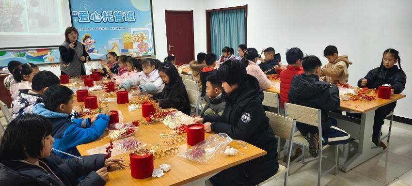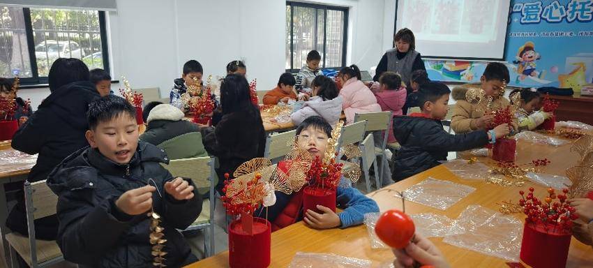 暖场游戏“吸福”团队挑战赛中,8岁男孩小宇主动要求担任队长,带领组员,最终赢得胜利。他兴奋地高举“福”字贴纸,脸上洋溢着自信的笑容:“原来大家一起努力,真的能赢!”这一刻,不仅是游戏的胜利,更是合作精神与集体荣誉感的悄然萌芽。手工制作环节中,孩子们在志愿者老师的指导下,剪裁、粘贴、装饰,亲手打造属于自己的“福桶”。10岁的朵朵一边小心翼翼地贴上金箔,一边认真地说:“我要把这个福桶送给奶奶,祝她马年吉祥如意,健康长寿。”稚嫩的话语里,藏着孝心与情感的表达——这正是德育与美育在生活中的自然流淌。
