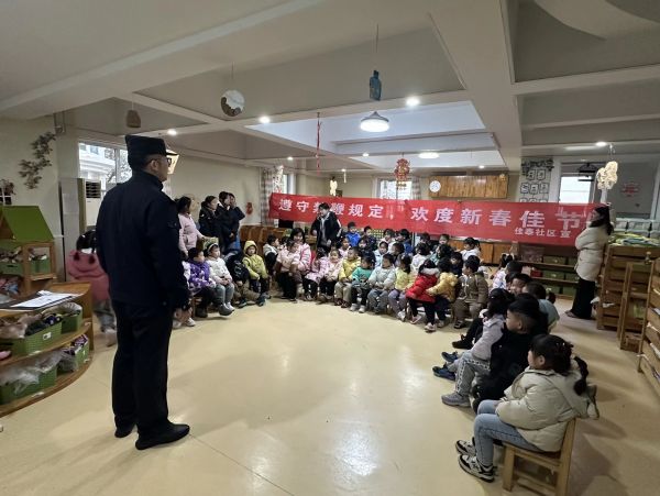 同时,社区联合湖滨派出所民警走进辖区幼儿园,开展“遵守禁鞭规定,防范安全风险,欢度新春佳节”主题宣讲活动。民警结合真实案例,用通俗易懂的语言向孩子们普及燃放烟花爆竹的安全隐患、环境危害,以及一氧化碳中毒的居家防范要点与应急处置方法。