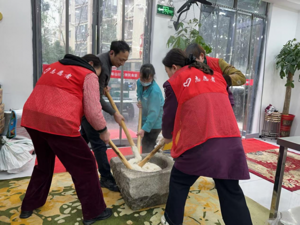 在手打糍粑区,木槌声声,糯米飘香。老师傅与年轻志愿者共同抡槌,温度与力度在协作中传递,传统手艺在代际接力中延续活力。“自己打的糍粑就是香!”人群中不时传来这样的感叹,儿时的记忆随着热气被重新唤醒。