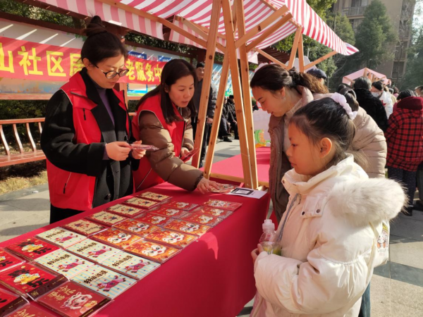 温暖不止于体验,更多在于细节,许多摊位前摆放着一叠配送卡片,居民采购后可由志愿者送货上门。85岁的丁婆婆选好窗花后,轻松地说:“志愿者一会儿帮送上门,还能帮我贴上。这哪里是逛市集,像是孩子们来家里帮我准备过年。”