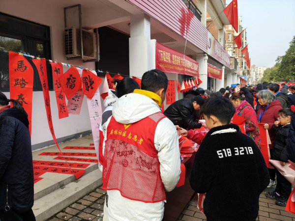 此次特邀经开区书画家协会书法老师们,为辖区居民公益写春联。“福满家门万事顺”“春回大地喜气浓”等吉祥语句跃然纸上,居民们手持免费春联,脸上洋溢着幸福笑容,将满满的新春祝福带回家。