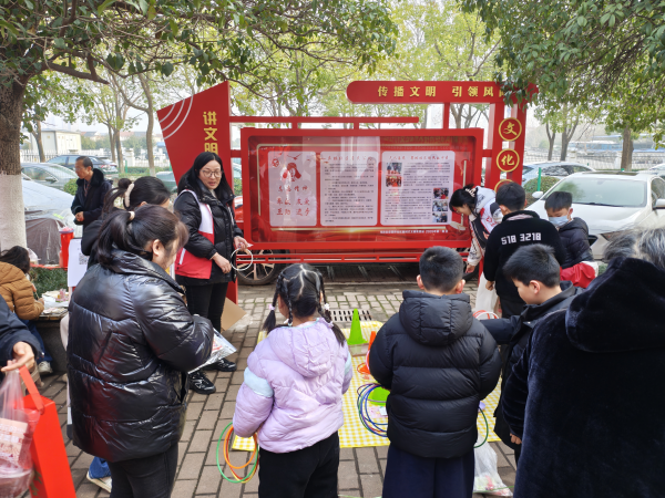 手工制作区成为文化传承的核心阵地。专业糖画手艺人笔下生花,融化的糖液在石板上流转,龙、马等图案栩栩如生,居民转动转盘期待心仪造型,孩子们捧着糖画爱不释手,直观感受传统技艺的魅力;灯笼DIY摊位前,大人小孩齐动手,裁剪、粘贴、组装,一盏盏色彩鲜艳的灯笼陆续成型,既锻炼了动手能力,又收获了专属新春装饰;辖区建设银行也加入送福行列,为居民提供免费春联,同时附赠洗衣液等实用礼品,居民们手持春联与礼品,脸上洋溢着幸福笑容。