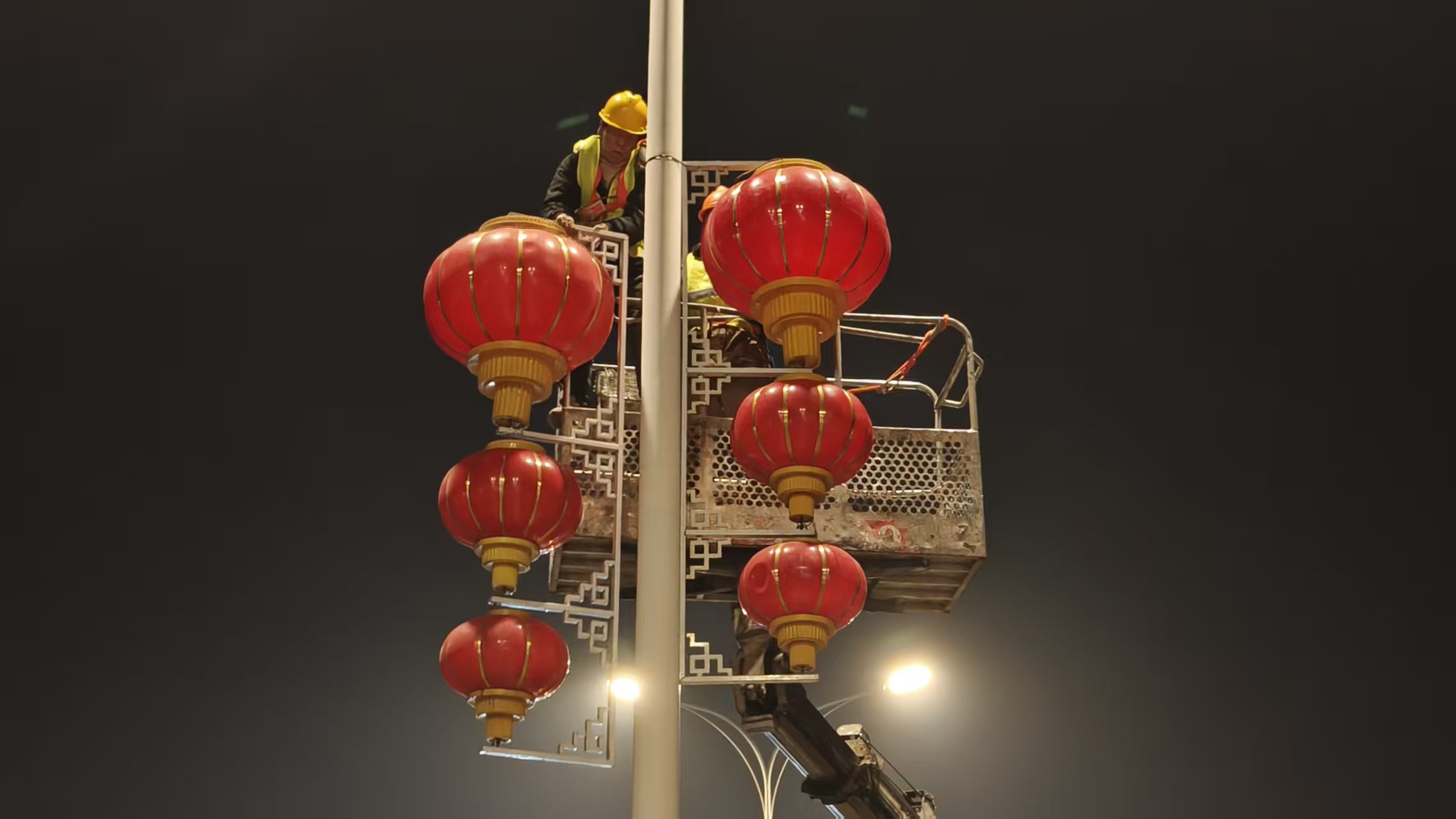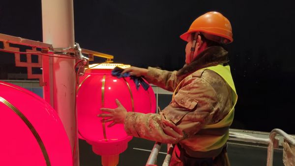 为营造欢乐祥和的节日氛围,武汉经开区城管部门提前谋划、精心组织,在东风大道、车谷大道、兴城大道、左岸大道等多条主干道有序悬挂灯笼和中国结。为保障作业安全、减少对交通的影响,施工人员选择在夜间至凌晨时段加紧安装,抢抓进度完成灯饰布置。安装过程中,工作人员严格规范操作,确保每一盏红灯笼、每一副中国结都牢固美观、整齐协调。