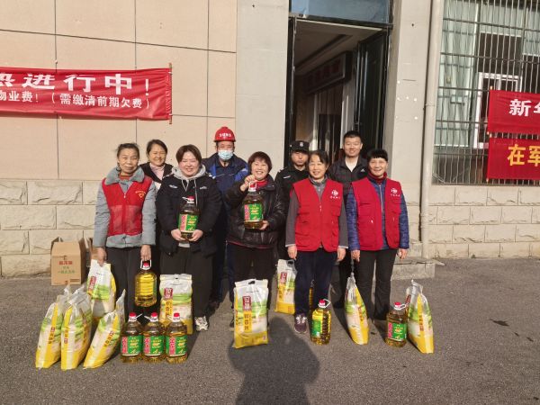 慰问现场,社区工作人员与大家亲切交流,感谢大家一年来为社区环境、平安建设、居民自治付出的辛勤努力,细致叮嘱大家注意防寒保暖、劳逸结合。米、油、等慰问品满载社区心意,让一线从业者与自治成员倍感温暖。