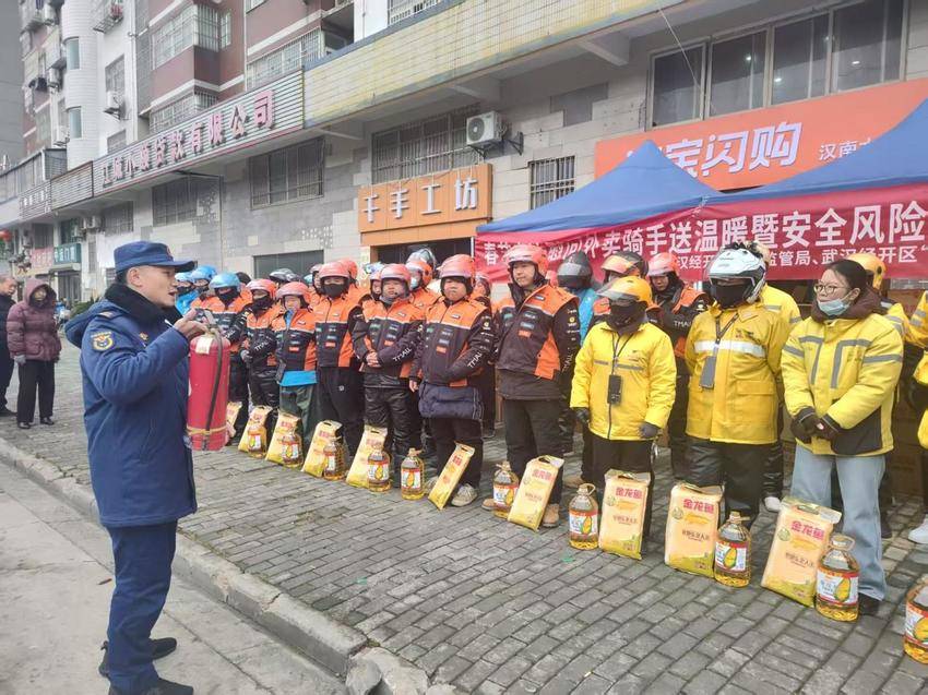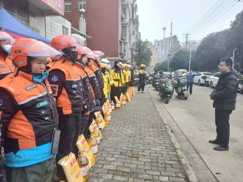 车谷融媒2月10日讯 一袋袋米、一壶壶油,映出一张张笑脸……2月9日上午,武汉经开区市场监管局开展春节前慰问活动,为180多名“外卖小哥”送上暖心的“春节大礼包”。