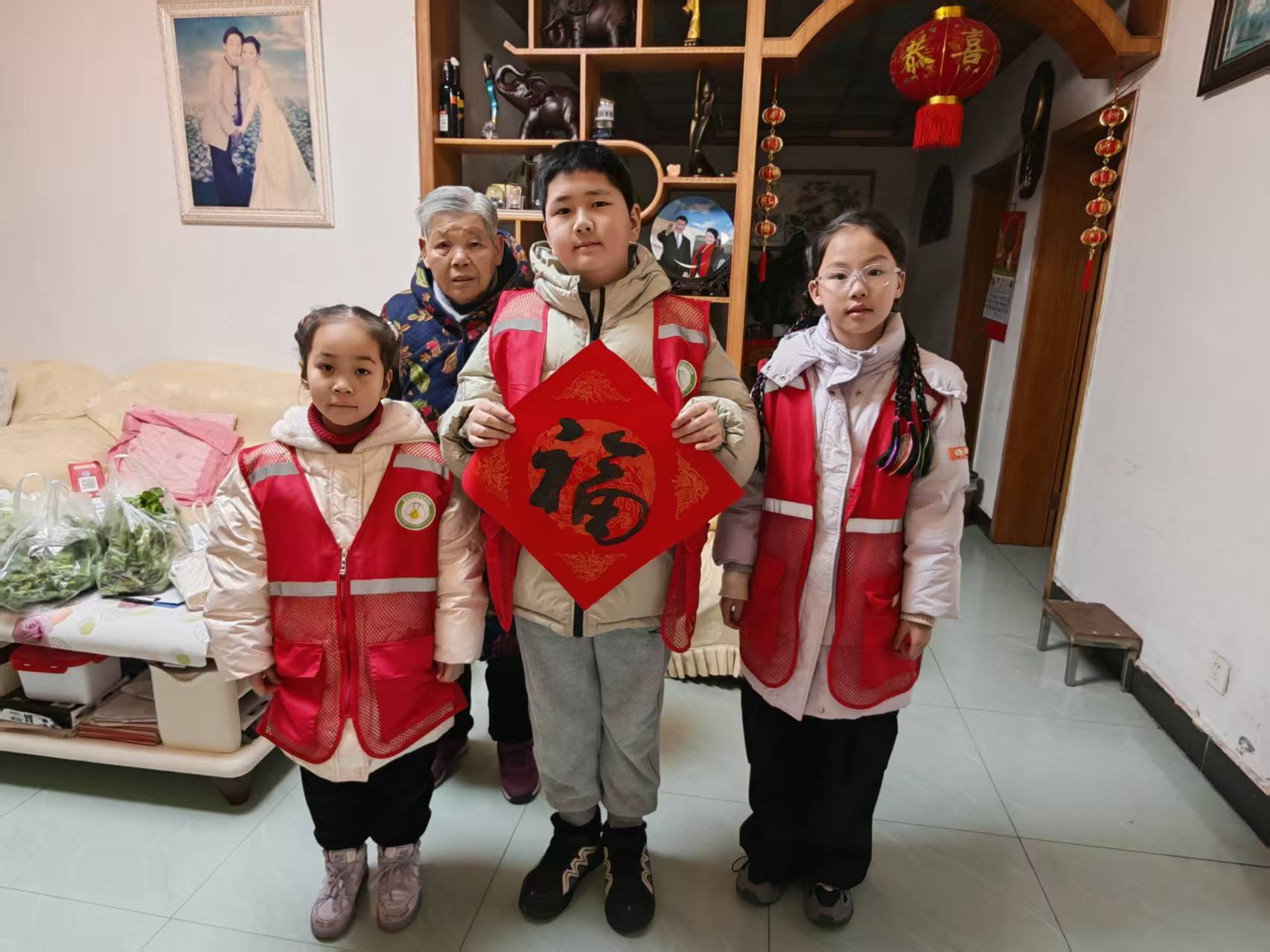 活动尾声,青少年志愿者们带着亲手书写的春联、福字,走访慰问了辖区独居、空巢老人。