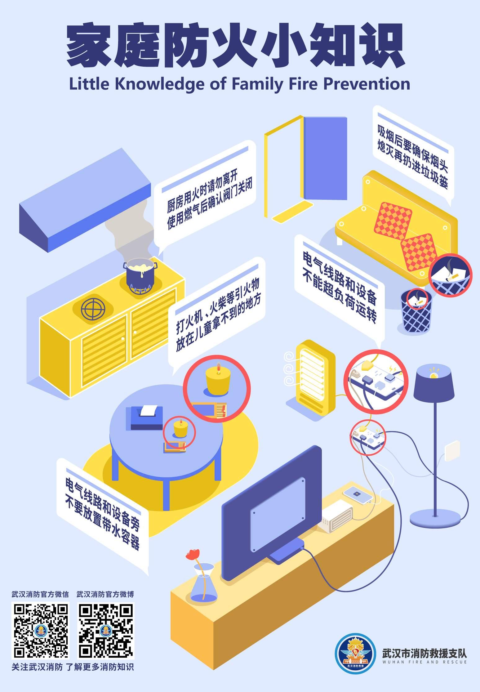 3、居民家庭要开展一次家庭消防安全检查,天气寒冷,取暖时注意安全用火用电,正确使用电器设备,不乱接电源线,不超负荷用电,及时更换老化电器设备和线路;电动自行车严禁在家里、楼道或门厅停放或充电,消防通道要保持畅通。离家出门或入睡前要落实“三清三关”(清阳台、清厨房、清走道,关火、关电、关气)措施。