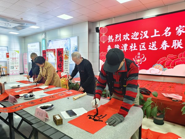 车谷融媒2月12日讯 2月6日,军山街道蒲潭社区以党建为引领,依托新时代文明实践站,组织辖区党员志愿者、书法爱好者,义写春联、送福送平安系列活动,把浓浓的年味和新春的祝福送到居民们手中。