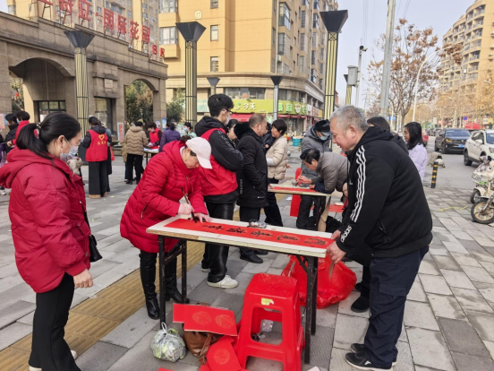 活动现场热闹非凡,年味十足。社区邀请书法爱好者现场挥毫泼墨,免费为居民书写春联、福字,一副副寓意吉祥的春联满载新春祝福,让居民近距离感受传统书法与年俗文化的独特魅力。