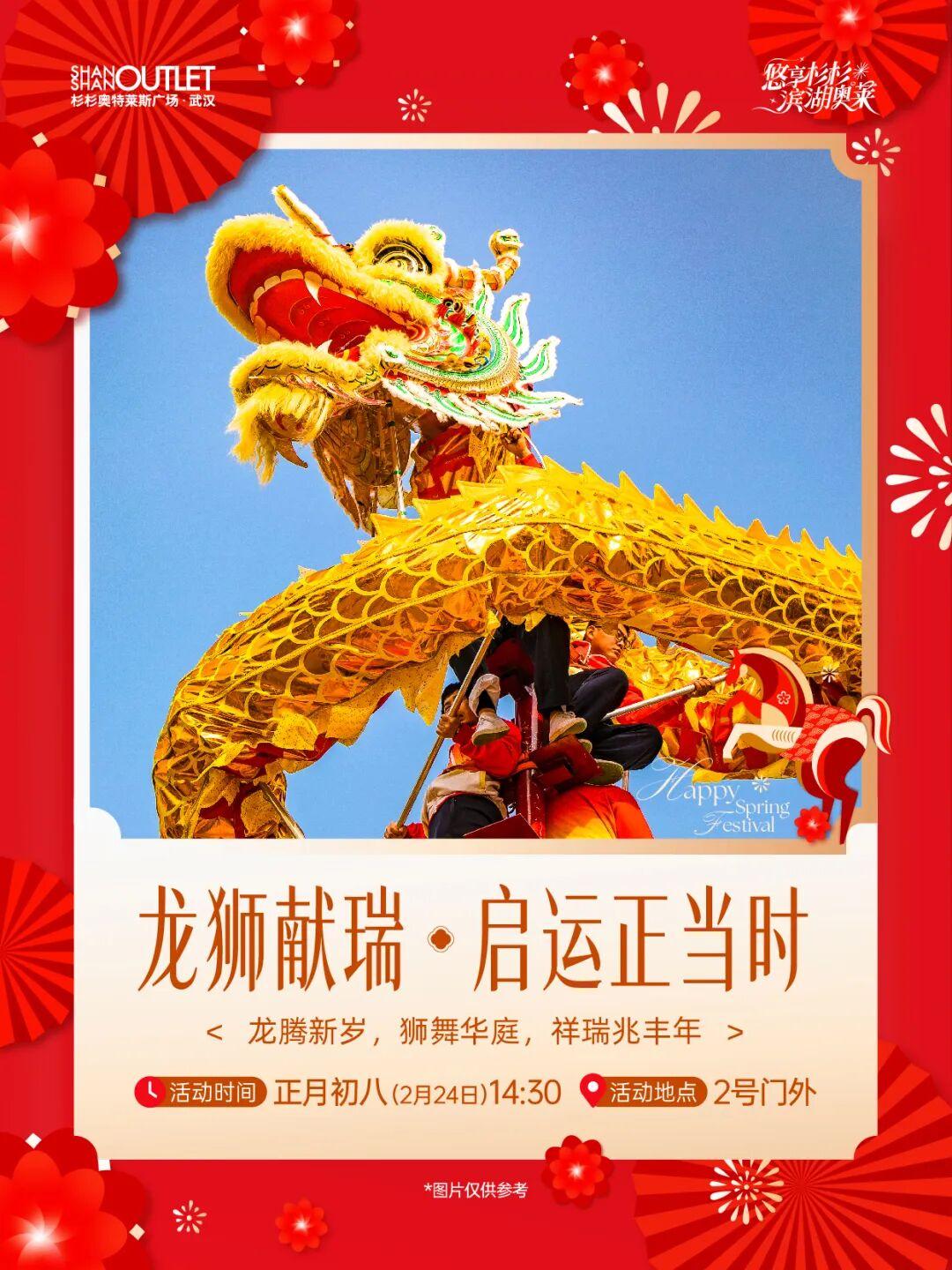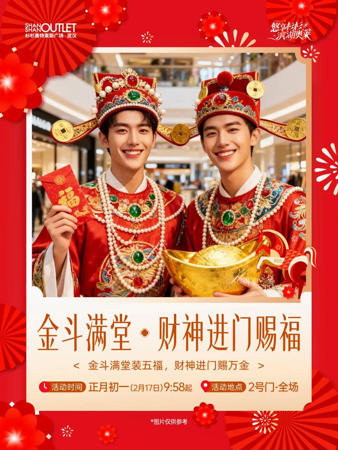 武汉杉杉奥特莱斯将传统年味儿玩出花样,大年初一到初八,来武汉杉杉奥莱,不仅可以看醒狮登门采青送吉、和高颜值财神天团互动迎好运、与金陵十二钗邂逅古典年华,还可以参与300+国内外品牌全场3折起、新春即享团券、名品新春立减、早鸟好运刮刮乐等优惠活动。过年买新衣,就逛杉杉奥莱。