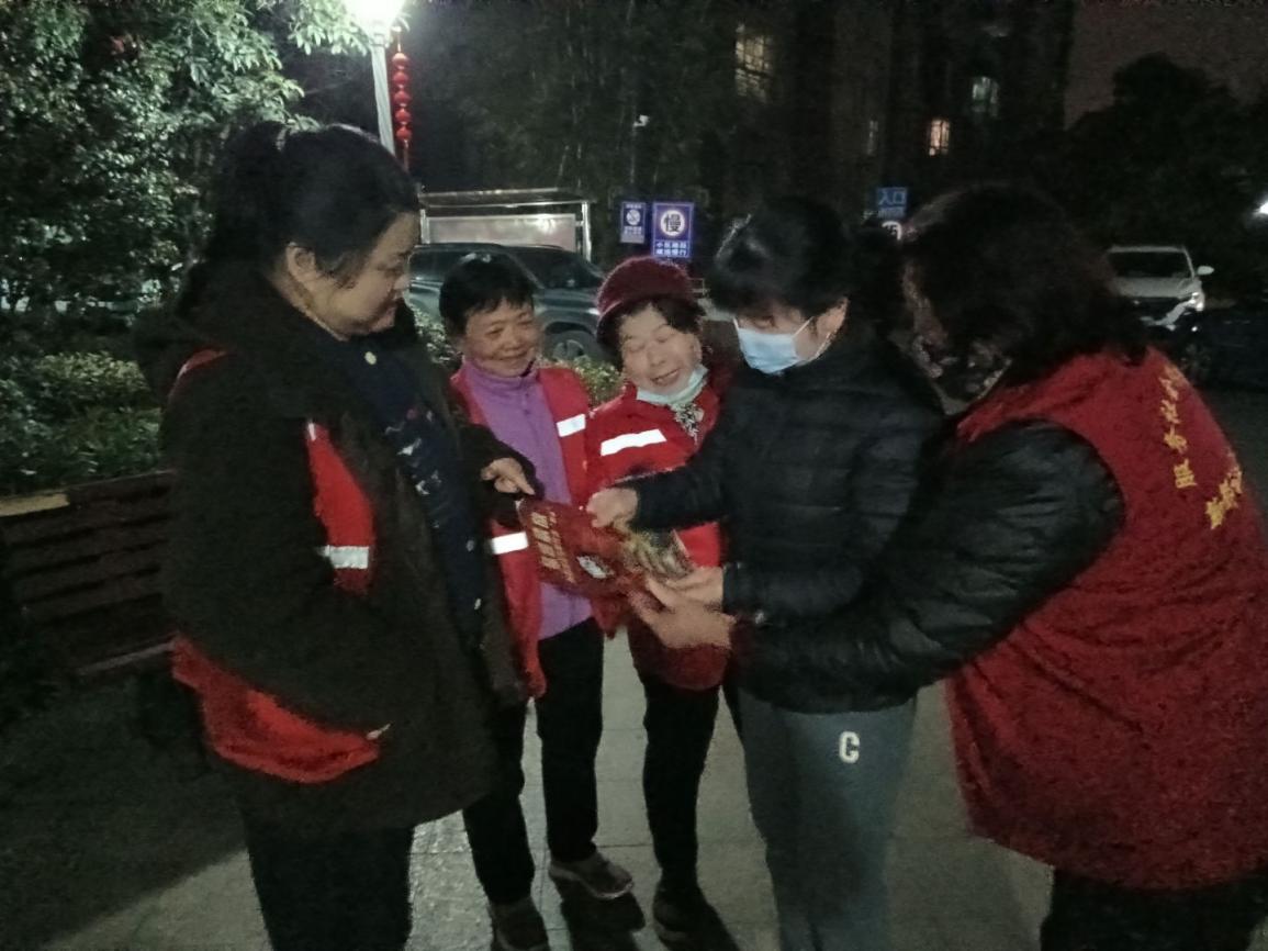“晚上天气寒冷,你们还坚持夜巡禁鞭,辛苦大家了!对禁鞭工作我们绝对大力支持,既安全又安静,过年也更舒心。”正在小区锻炼身体的居民看到宣传员们忙碌的身影,主动上前点赞。