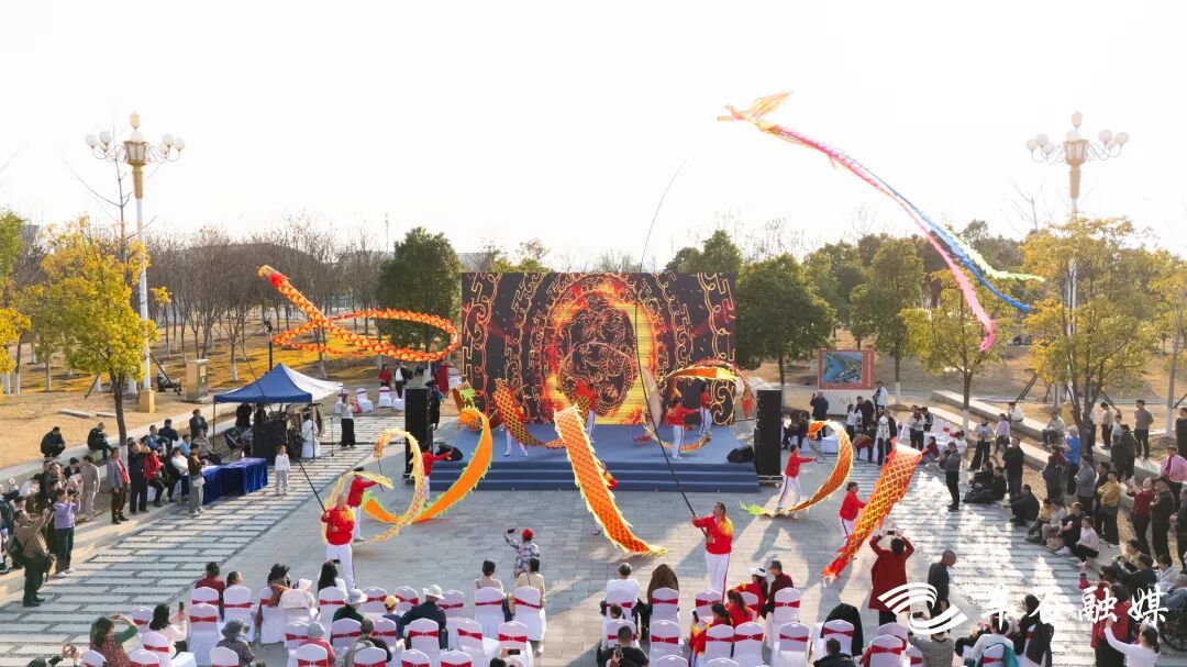 当天,非遗文化演出在川江池社区居民表演的中国鼓《中华魂》中拉开了序幕。随后,蒲潭社区、凤凰苑社区居民带来了《采莲船》《渔鼓》等特色民俗节目,黄梅戏选段、龙船调、古琴《流水》、琵琶《春江花月夜》等专业演出,让观众近距离领略传统文化的魅力,川剧《变脸》与魔术的精彩表演也引得观众掌声雷动。最后,龙湖社区带来的地龙表演则将现场气氛推向高潮。