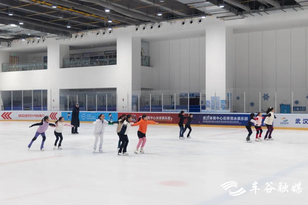 穿上护具、脚踩冰刀,初中生涂清扬缓步走进冰场,在冰面上飞驰。身旁,小朋友们穿上护具、推着助推器,滑得有模有样。武汉体育中心冰上运动中心教练介绍,冰上运动中心春节期间共接待超千名市民。
