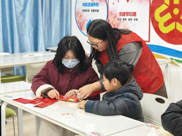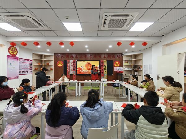 在“红包焕新颜 元宵福灯开”手工制作区,居民们带着提前备好的废旧红包踊跃参与。在志愿者带领下,大家相互交流创作技巧,通过折叠、粘贴、穿绳等一系列步骤,将原本闲置的红包变身成一个个造型精巧、寓意红火的新春灯笼。不少亲子家庭携手创作,孩子们在动手实践中了解元宵挂灯的传统习俗,在指尖创作中感受变废为宝的乐趣。