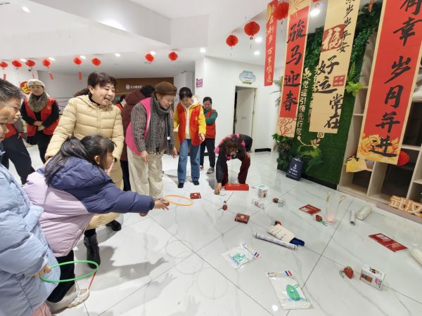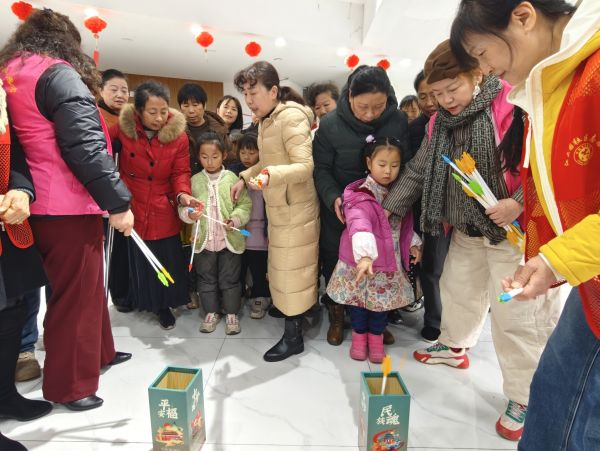 年味投壶区前,居民们有序排队体验,手持箭矢凝神瞄准,在一投一掷间感受古人的雅致闲情与传统游戏的独特魅力,每当箭矢精准入壶,现场便响起阵阵叫好声;一旁的趣味套圈区更是围满了前来参与的大小朋友,大家手持套圈,瞄准心仪的小礼品果断出手,套中奖品时的惊喜欢呼、失手时的善意哄笑交织在一起,现场气氛持续升温,邻里之间的距离也在轻松欢乐的互动中不断拉近。