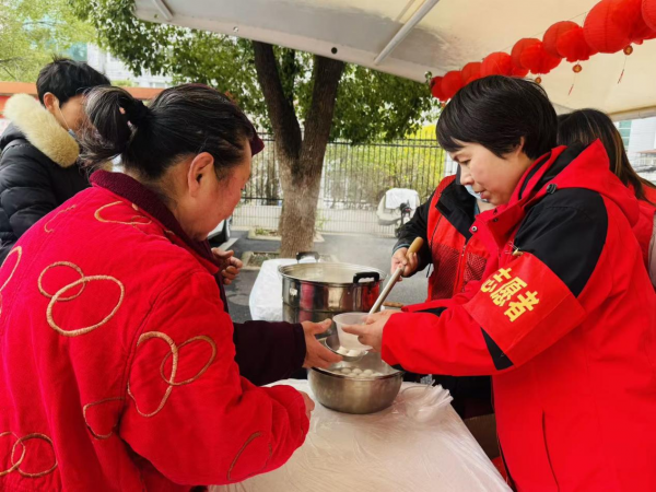 “汤圆出锅啦!”随着志愿者的吆喝,热气腾腾的汤圆被分发给现场居民。大家品尝着香甜软糯的汤圆,脸上洋溢着幸福的笑容,寓意新的一年家家团圆、生活甜蜜。