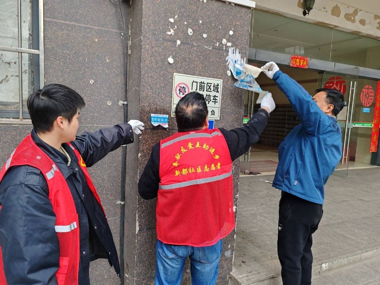 社区周密部署、细致安排,大家分工协作、默契配合。老党员夏水清带头冲锋在整治一线,逐楼栋、逐层清理楼道堆积杂物、废弃物品与卫生死角。银发志愿者们手持铲刀、除胶剂、抹布、垃圾袋等工具,对沿街商铺墙面、公告栏的小广告进行“拉网式”清除,做到发现一处、清理一处、洁净一处,彻底铲除城市“顽疾”,热心居民手拿夹子和垃圾袋积极捡拾小区漂白物等,还原小区清爽面貌。大家不怕脏、不怕累,用汗水换来楼道通畅、墙面洁净、环境提质,以实际行动诠释新时代雷锋精神的丰富内涵。