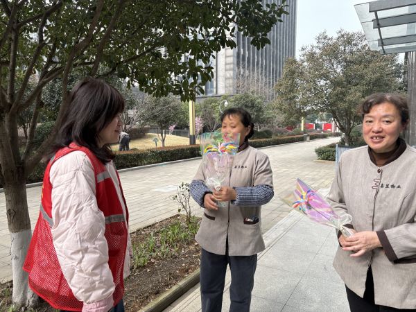 手工制作环节结束后,社区开启暖心慰问行动。社区工作人员与巾帼志愿者们带着刚制作好的手工花束,先后将花束送给了辖区内的高龄老人、残疾妇女等特殊群体,每到一户,工作人员都详细询问她们的身体状况和生活需求,并致以节日的问候。
