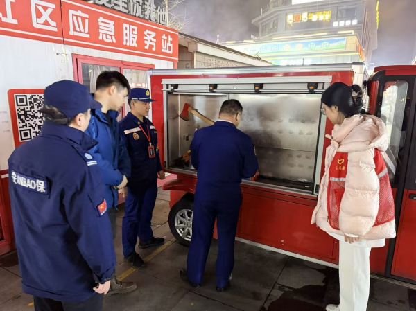 消防安全是社区平安的基石。永济社区建立了“周三夜查+日常自查”相结合的常态化巡查机制。社区紧密联动蔷薇路消防站,依托每周三消防夜查行动,深入辖区对物业消防监控室值守、商户消防设施配备、商业街流动摊贩用火用气安全、公共消防通道畅通情况等进行重点检查,且每次夜查侧重不同主题,确保检查全覆盖、无死角。同时,社区工作人员在日间网格巡查中,重点对居民楼楼道、电动车停车棚等公共区域的消防设施进行自查,发现问题立即上报、快速处理,形成隐患整改闭环管理。