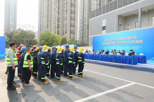 车谷融媒4月3日讯 近日,武汉市2026年新能源汽车充电基础设施突发事件应急演练在武汉经开区国网三角湖充换电站举行。本次演练由市发改委、武汉经开区管委会联合主办,经开区发改局、市充换电技术有限公司承办,市直相关部门、各区发改局及全市多家新能源企业现场观摩,区消防救援局、湖北道帆科技有限公司等单位参演。