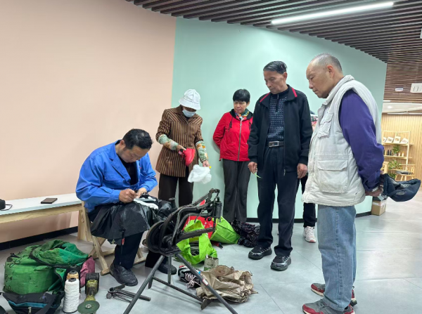 上午9点,各摊位前便排起了长队。磨刀师傅手持砂轮,除锈、开刃、抛光一气呵成,短短十几分钟便让钝涩刀具重焕锋利;修伞修鞋师傅凝神专注,娴熟修复破损伞骨、开裂鞋底,利落手法获居民称赞;缝纫摊位上,志愿者踩着缝纫机,为居民改裤脚、钉纽扣、缝补衣物,一针一线传递邻里温情;理发区人气高涨,理发师细心询问需求,巧手修剪让居民们精神焕发。
