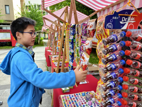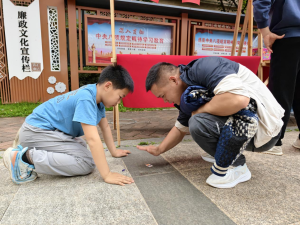 活动现场设有滚铁环、跳房子、丢沙包等多个区域,并引入游戏票闯关机制,由老党员志愿者担任裁判。家长们化身最投入的“大朋友”:王刚轻松地推着铁环,教儿子握钩,感慨道:“让他体验我小时候的快乐,特别有意义”;拍画片区域,父子对战欢笑不断;跳皮筋区,妈妈们边跳边唱,引得孩子跃跃欲试。游戏票可兑换麦丽素、铁皮青蛙等怀旧零食和玩具,大大激发了参与热情,孩子们为集票乐此不疲。三年级的李昌睿用赢得的8张票换到竹蜻蜓,家长付青玉评价:“闯关设计让孩子玩得投入,还锻炼了身体。”