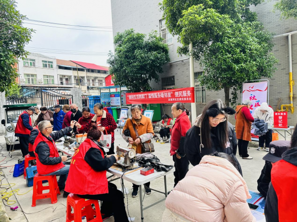 磨刀师傅弓着腰,在磨刀器上细细打磨,一把把锈钝的菜刀瞬间变得锋利如新。一旁的修鞋、修伞摊位同样忙碌,师傅们穿针引线、修补黏合,让居民们“压箱底”的旧物件重获新生。小家电检修区,志愿者仔细排查故障,为居民修好了电水壶、电饭煲等多个小家电。