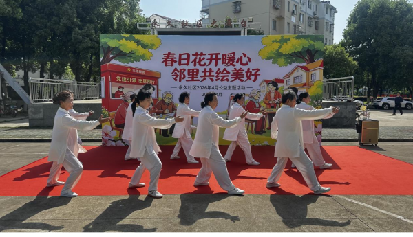 车谷融媒4月28日讯 近日,沌阳街道永久社区以春日公益为契机,整合辖区爱心资源、志愿服务力量与文艺团队,举办“春日花开暖心 邻里共绘美好”4月公益主题活动。活动以文艺展演、爱心惠民、互动体验为载体,凝聚社区、商家、志愿者、居民多方合力,营造出和谐睦邻、温暖向善的浓厚氛围。