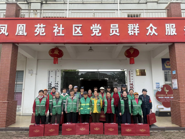 活动最后,社区为每一位户外工作者发放精心准备的暖心慰问品,向大家传递社区的关怀与温暖,并组织全体人员合影留念,定格下温馨欢乐的美好瞬间。